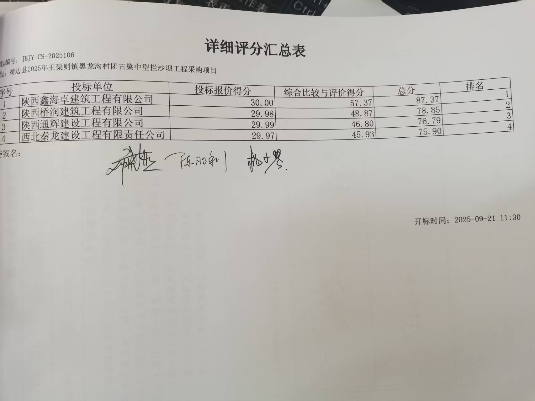 一、项目编号:JBJY-CS-2025106二、项目名称:靖边县2025年王渠则镇黑龙沟村团古梁中型拦沙坝工程采购项目三、采购结果采购包1: