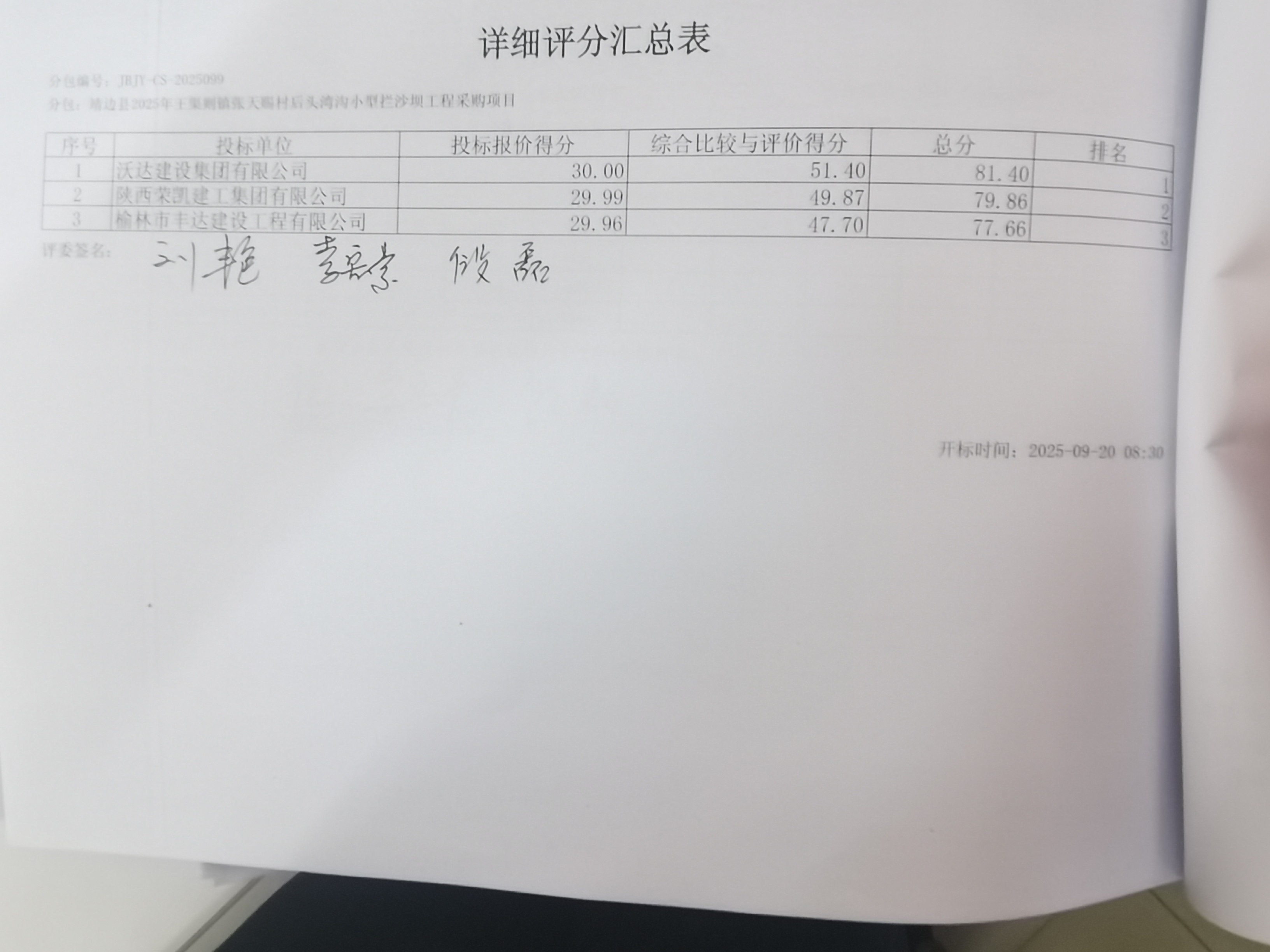 一、项目编号:JBJY-CS-2025099二、项目名称:靖边县2025年王渠则镇张天赐村后头湾沟小型拦沙坝工程采购项目三、采购结果采购包1: