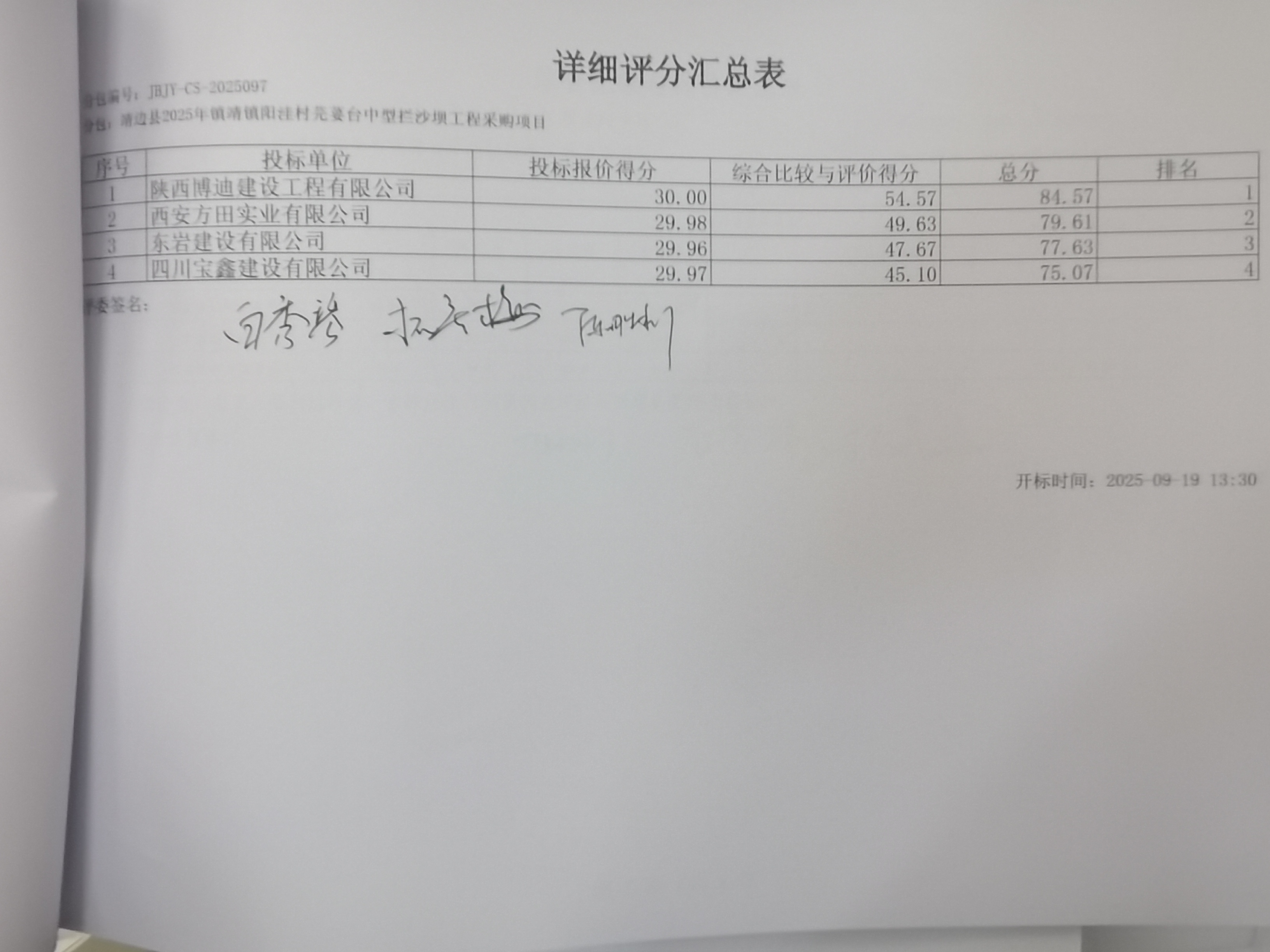 一、项目编号:JBJY-CS-2025097二、项目名称:靖边县2025年镇靖镇阳洼村芫荽台中型拦沙坝工程采购项目三、采购结果采购包1: