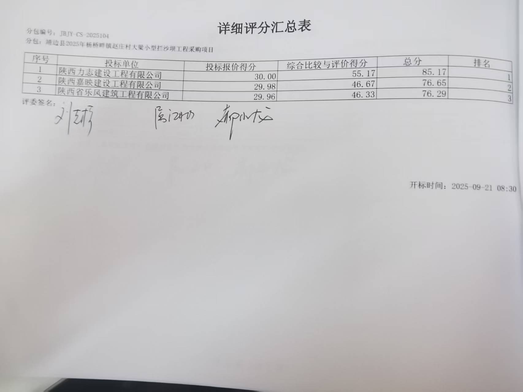 一、项目编号:JBJY-CS-2025104二、项目名称:靖边县2025年杨桥畔镇赵庄村大梁小型拦沙坝工程采购项目三、采购结果采购包1: