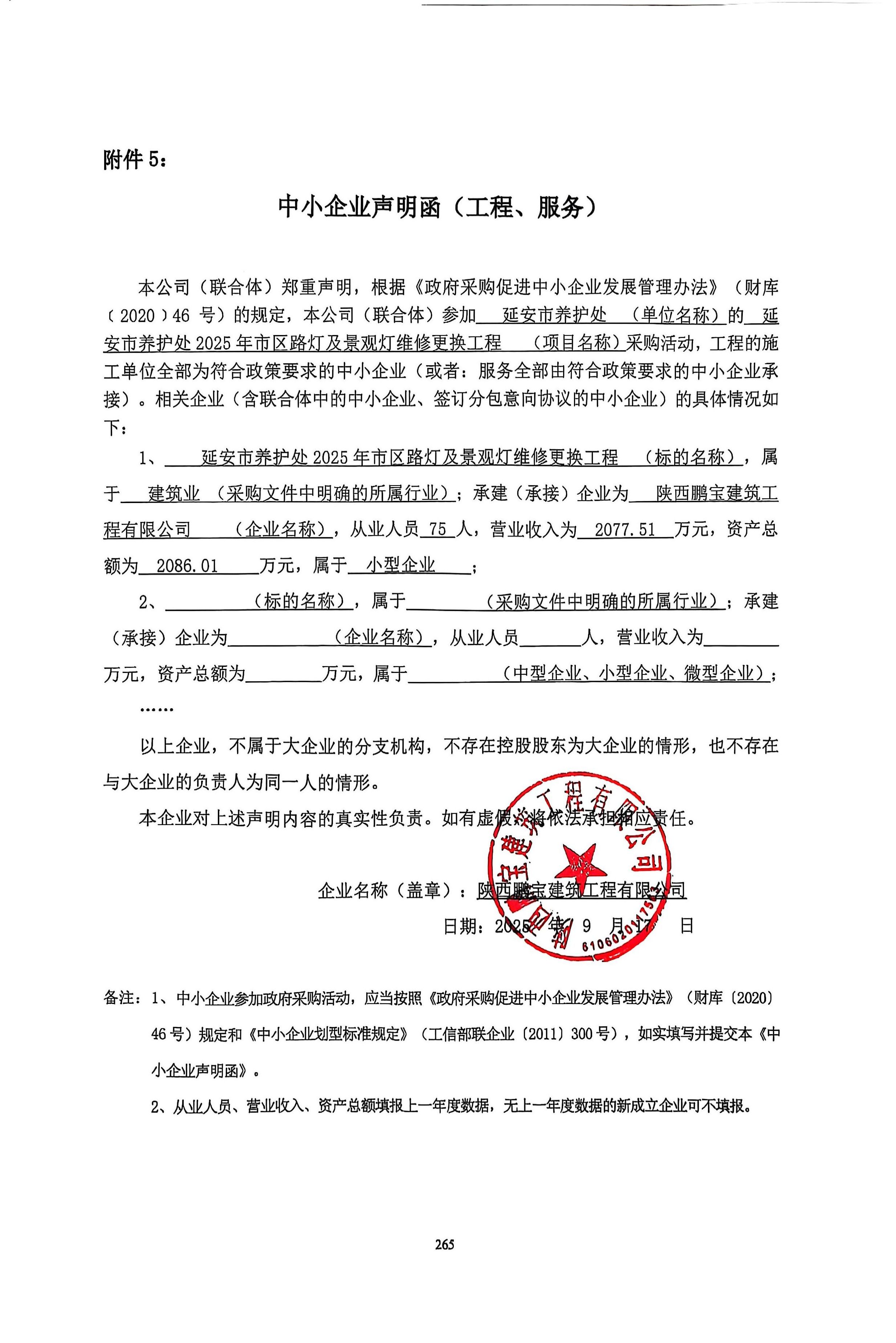 四、主要标的信息合同包1(延安市养护处2025年市区路灯及景观灯维修更换工程): 工程类(陕西鹏宝建筑工程有限公司)