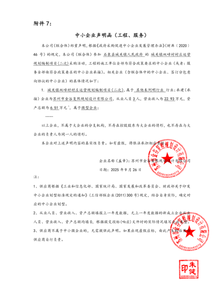 石泉县城关镇人民政府城关镇双嶂村村庄运营规划编制项目(二次)中标(成交)结果公告