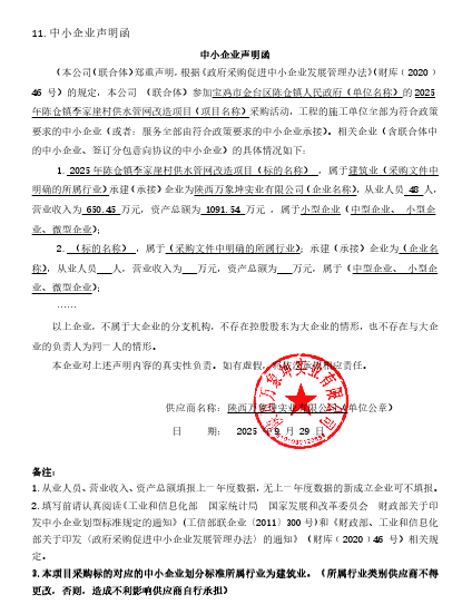 2025年陈仓镇李家崖村供水管网改造项目中标(成交)结果公告