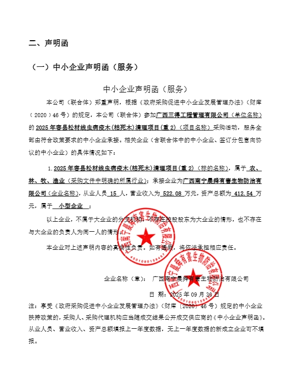 广西三得工程管理有限公司关于2025年容县松材线虫病疫木(枯死木)清理项目(重2)成交公告