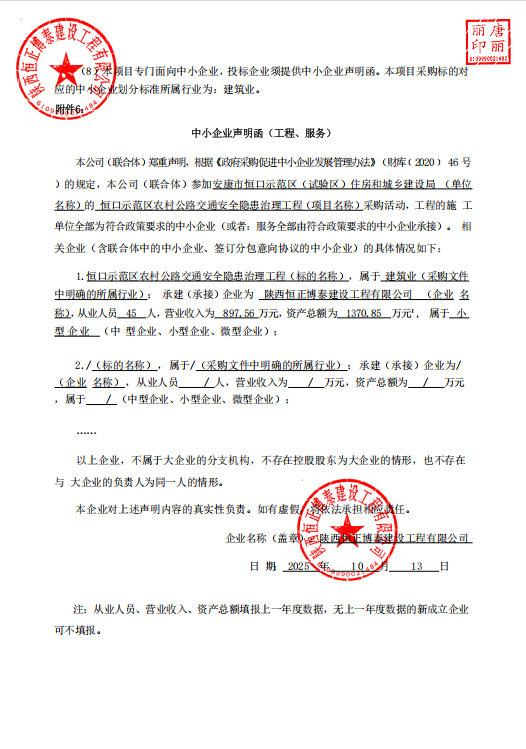 七、公告期限自本公告发布之日起1个工作日。 八、其他补充事宜请成交单位在成交公示期结束后(一个工作日),前往代理机构领取成交通知书,同时请递交两份有效的纸质版投标文件(一正一副),以供备案、归档使用。 九、凡对本次公告内容提出询问,请按以下方式联系。1.采购人信息名称:安康市恒口示范区住房和城乡建设局 地址:恒口示范区创业大厦7楼 联系方式:0915-3629069 2.采购代理机构信息名称:陕西中信海诚造价咨询有限公司 地址:安康市汉滨区水西门内环路往东50米 联系方式:18591509698(非工作日请勿打扰) 3.项目联系方式项目联系人:程静 电话:18591509698(非工作日请勿打扰) 陕西中信海诚造价咨询有限公司 2025年10月14日 相关公告 |
