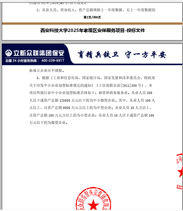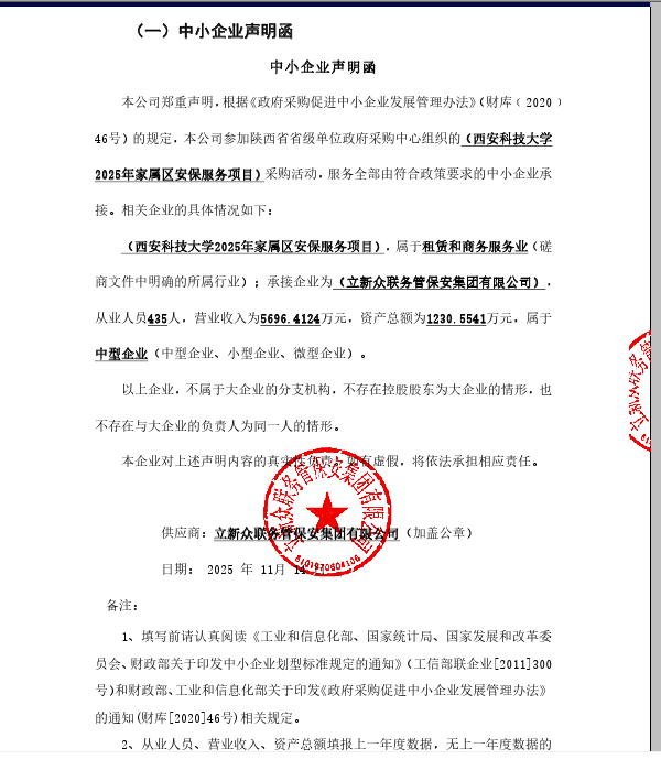 四、主要标的信息合同包1(西安科技大学2025年家属区安保服务项目): 服务类(立新众联务管保安集团有限公司)