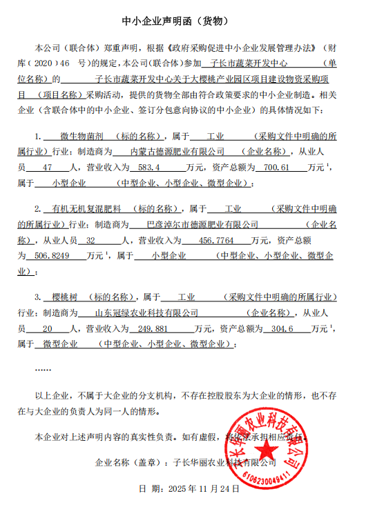 子长市蔬菜开发中心关于大樱桃产业园区项目建设物资采购项目中标(成交)结果公告