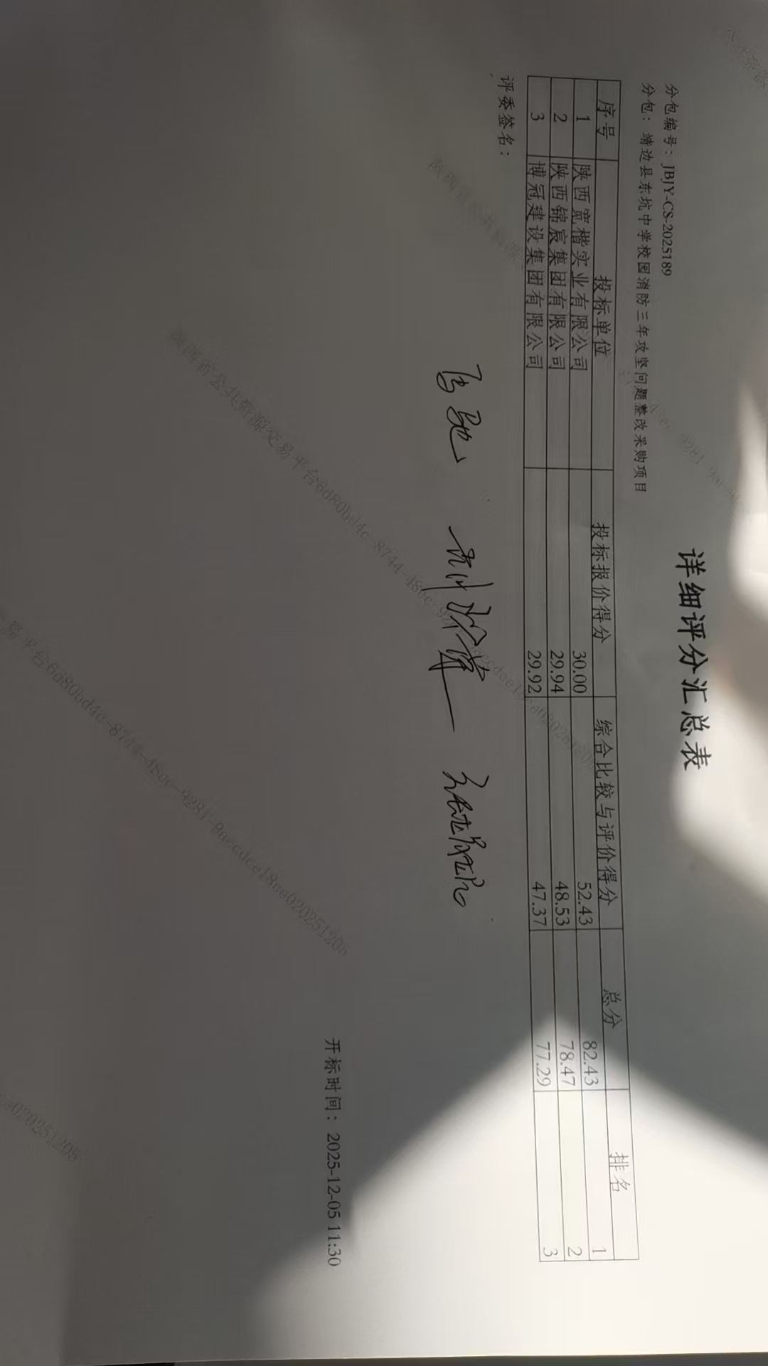 一、项目编号:JBJY-CS-2025189 二、项目名称:靖边县东坑中学校园消防三年攻坚问题整改采购项目 三、采购结果 采购包1: | 供应商名称 | 供应商地址 | 中标(成交)金额 | 评审总得分 | | 陕西宽楷实业有限公司 | 陕西省榆林市 | 2,172,000.00元 | 82.43 | 四、主要标的信息 合同包1(靖边县东坑中学校园消防三年攻坚问题整改采购项目): 工程类(陕西宽楷实业有限公司) | 品目号 | 品目名称 | 采购标的 | 施工范围 | 施工工期 | 项目经理 | 执业证书信息 | 金额(元) | | 1 | 其他建筑工程 | 1 | 采购人指定 | 合同签订后4个月内完成 | 梁元胜 | 陕261191911981 | 2,172,000.00 | 五、评审专家(单一来源采购人员)名单: 六、代理服务收费标准及金额: | 代理服务收费标准及金额 | | | 合同包号 | 合同包名称 | 代理服务费金额(万元) | 收取对象 | | 1 | 靖边县东坑中学校园消防三年攻坚问题整改采购项目 | 0 | 无 | 七、公告期限 自本公告发布之日起1个工作日。 八、其他补充事宜 九、凡对本次公告内容提出询问,请按以下方式联系。 1.采购人信息 名称:靖边县东坑镇中学 地址:靖边县东坑镇 联系方式:13892204919 2.采购代理机构信息 名称:靖边县县级政府采购中心 地址:靖边县统万路120号 联系方式:0912-4646403 3.项目联系方式 项目联系人:高浩渊、杜宝珠 电话:0912-4646403、13892204919 靖边县县级政府采购中心 2025年12月08日 |