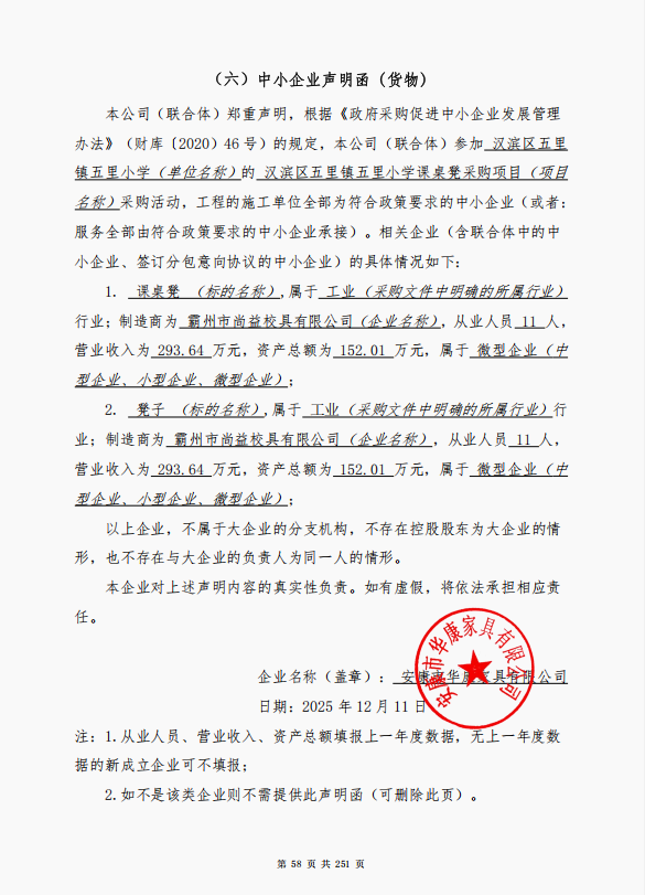 汉滨区五里镇五里小学课桌凳采购项目中标(成交)结果公告