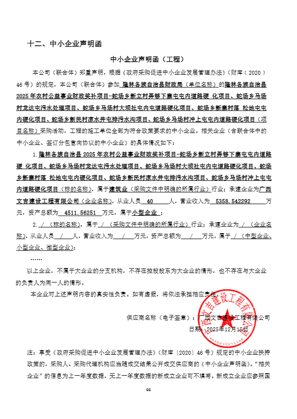 广西双翔工程管理咨询有限公司关于隆林各族自治县2025年农村公益事业财政奖补项目-蛇场乡新立村弄够下寨屯屯内道路硬化项目、蛇场乡马场村龙达屯污水处理项目、蛇场乡马场村大坝社屯内屯道路硬化项目、蛇场乡新寨村落松地屯屯内硬化项目、蛇场乡新民村凉