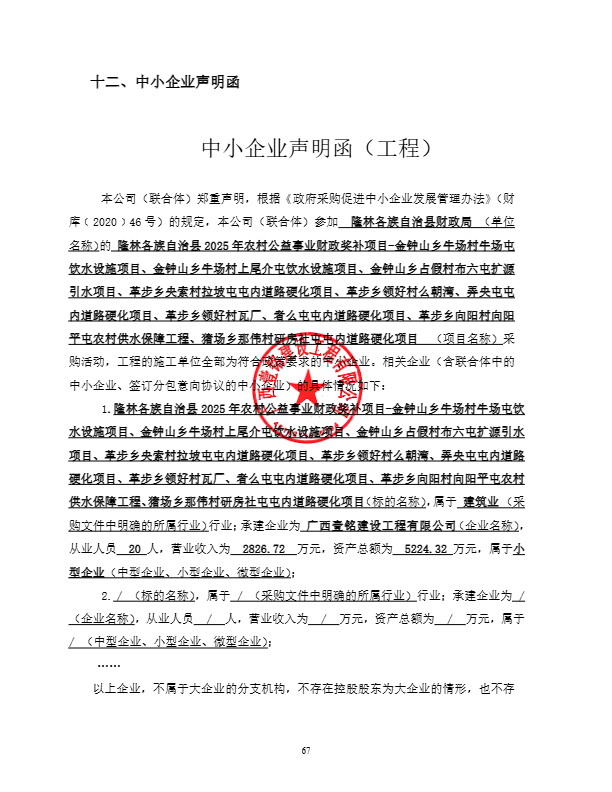 广西双翔工程管理咨询有限公司关于隆林各族自治县2025年农村公益事业财政奖补项目-金钟山乡牛场村牛场屯饮水设施项目、金钟山乡牛场村上尾介屯饮水设施项目、金钟山乡占假村布六屯扩源引水项目、革步乡央索村拉坡屯屯内道路硬化项目、革步乡领好村么朝湾