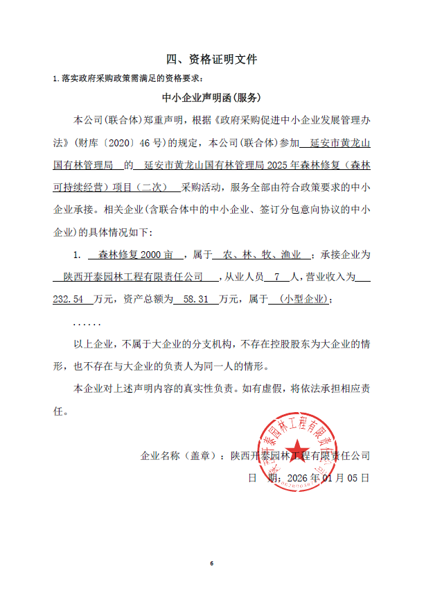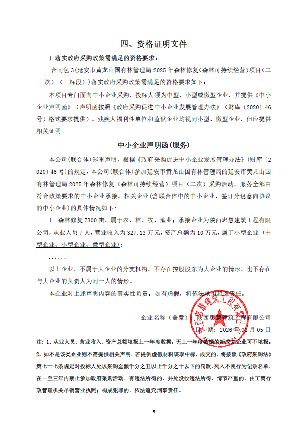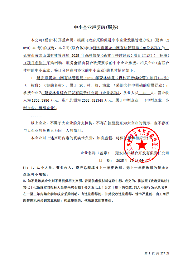 延安市黄龙山国有林管理局2025年森林修复(森林可持续经营)项目(二次)中标(成交)结果公告