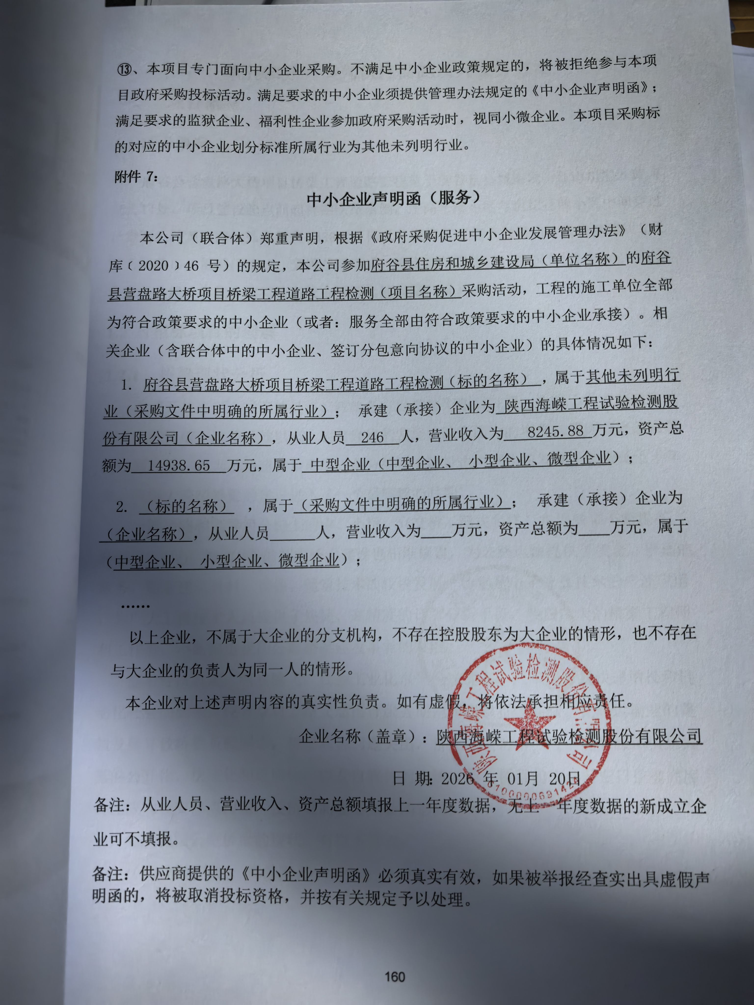 府谷县营盘路大桥项目桥梁工程道路工程检测中标(成交)结果公告