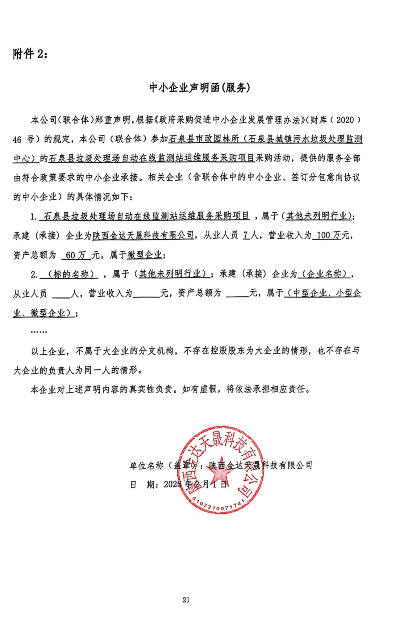 石泉县市政园林所(石泉县城镇污水垃圾处理监测中心)石泉县垃圾处理场自动在线监测站运维服务采购项目中标(成交)结果公告