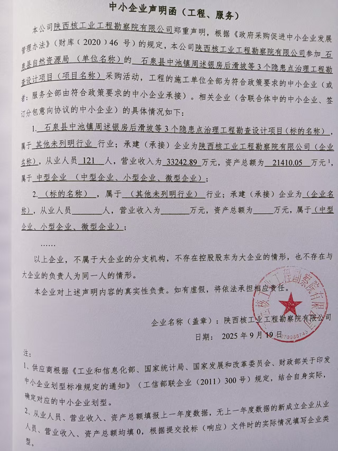 石泉县自然资源局石泉县中池镇周述银房后滑坡等3个隐患点治理工程勘查设计项目中标(成交)结果公告