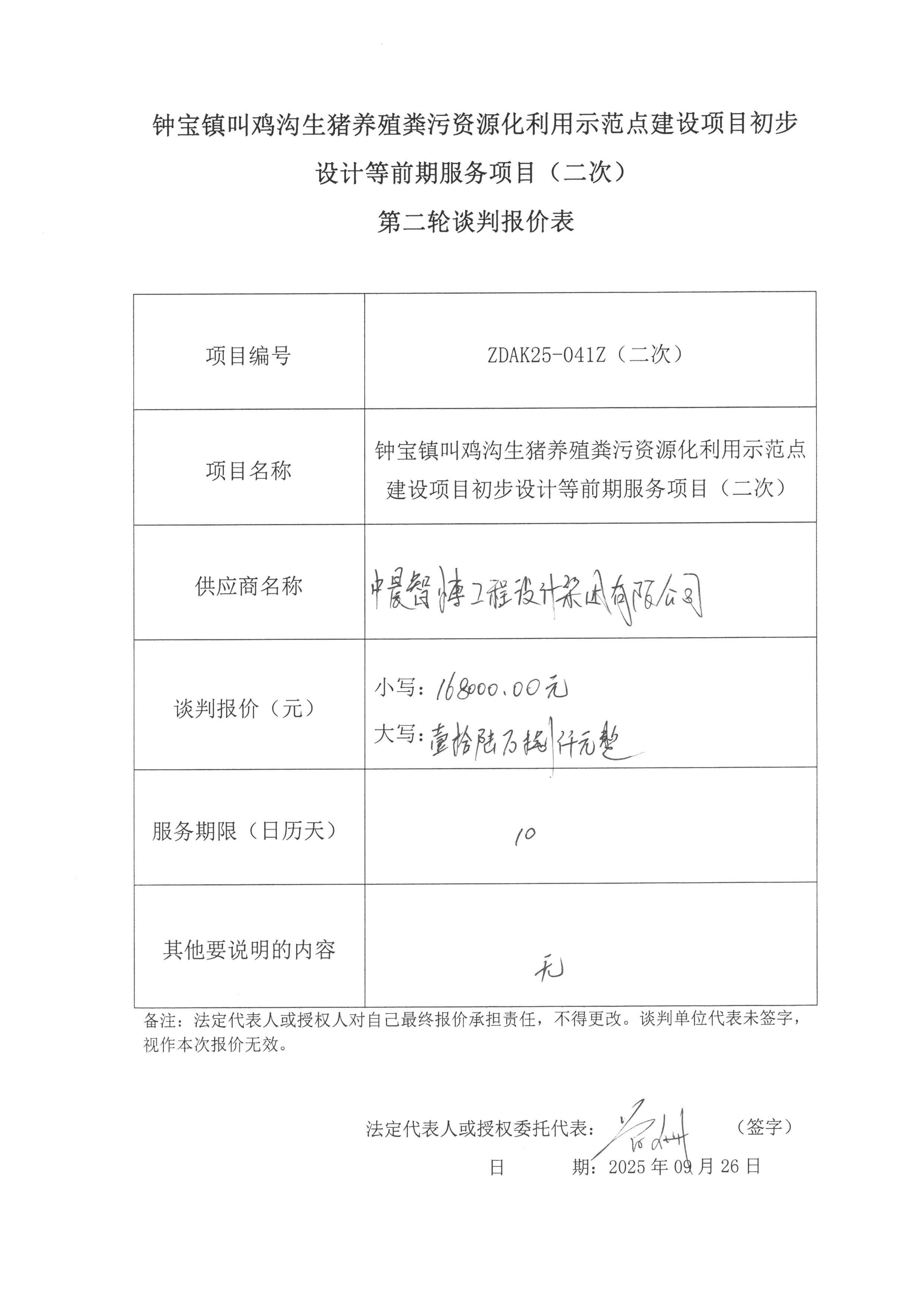 镇坪县农业林业和水利局(本级)钟宝镇叫鸡沟生猪养殖粪污资源化利用示范点建设项目初步设计等前期服务项目(二次)中标(成交)结果公告