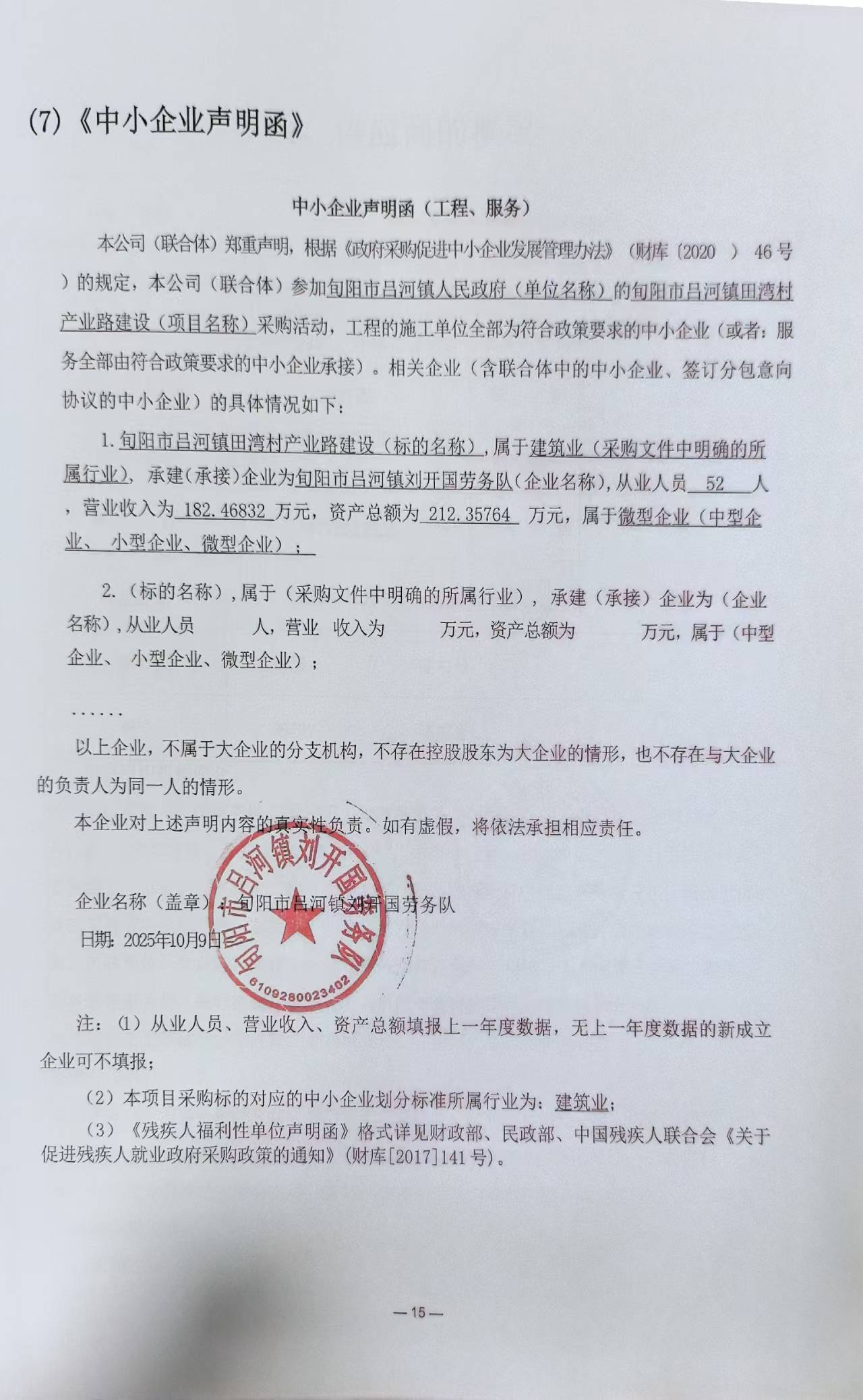 旬阳市吕河镇田湾村产业路建设中标(成交)结果公告