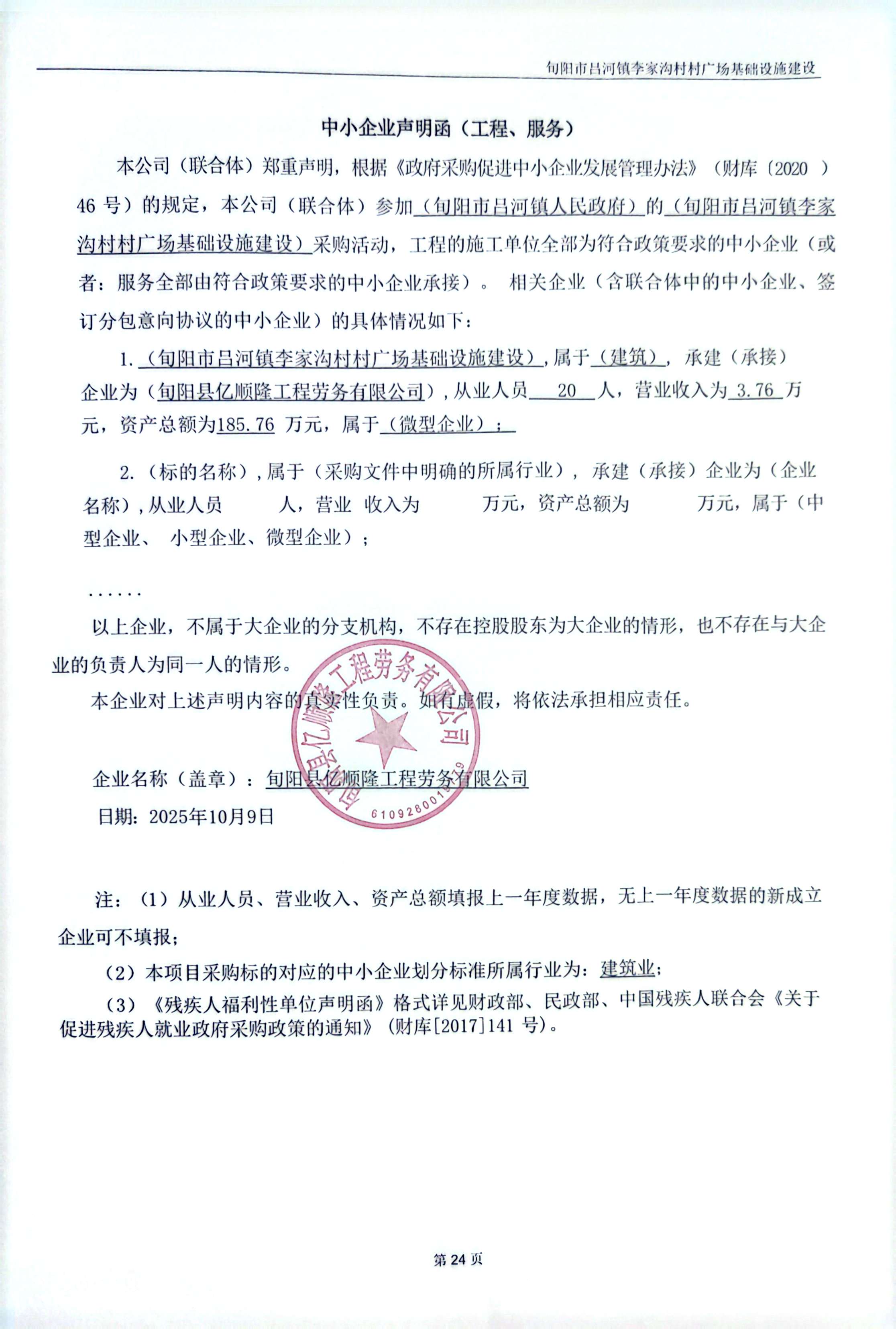 旬阳市吕河镇李家沟村村广场基础设施建设中标(成交)结果公告