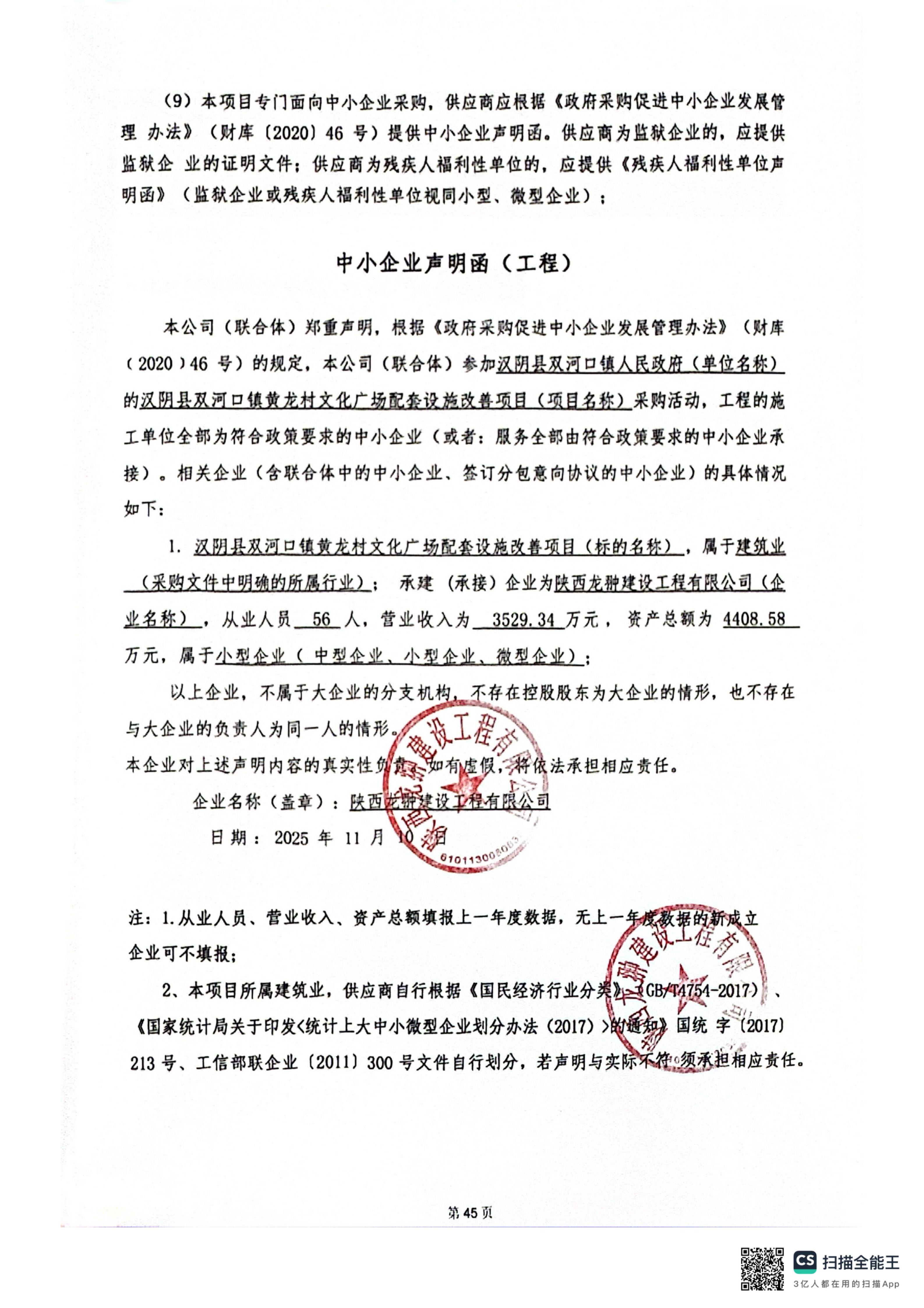 汉阴县双河口镇人民政府黄龙村文化广场配套设施改善项目中标(成交)结果公告