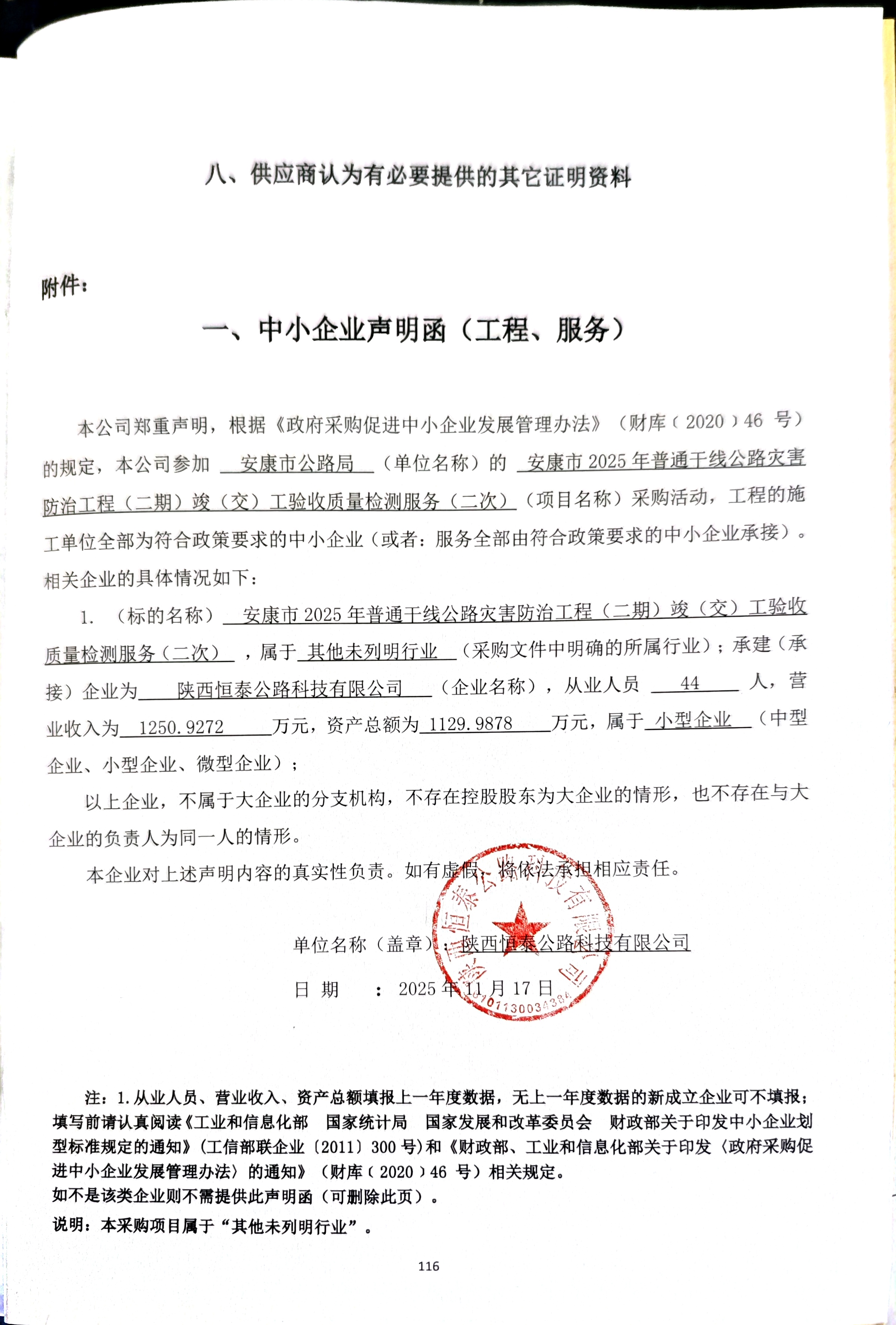 安康市2025年普通干线公路灾害防治工程(二期)竣(交)工验收质量检测服务(二次)中标(成交)结果公告