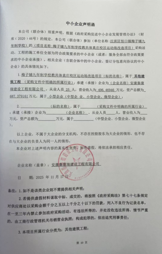 梅子铺九年制学校教共体袁庄校区运动场改造项目中标(成交)结果公告