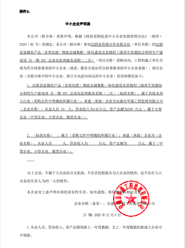 汉阴县富硒农产品(农资化肥)物流仓储集配一体化建设及县镇村三级再生资源综合利用生产建设项目一期EPC总承包监理服务采购(二次)中标(成交)结果公告