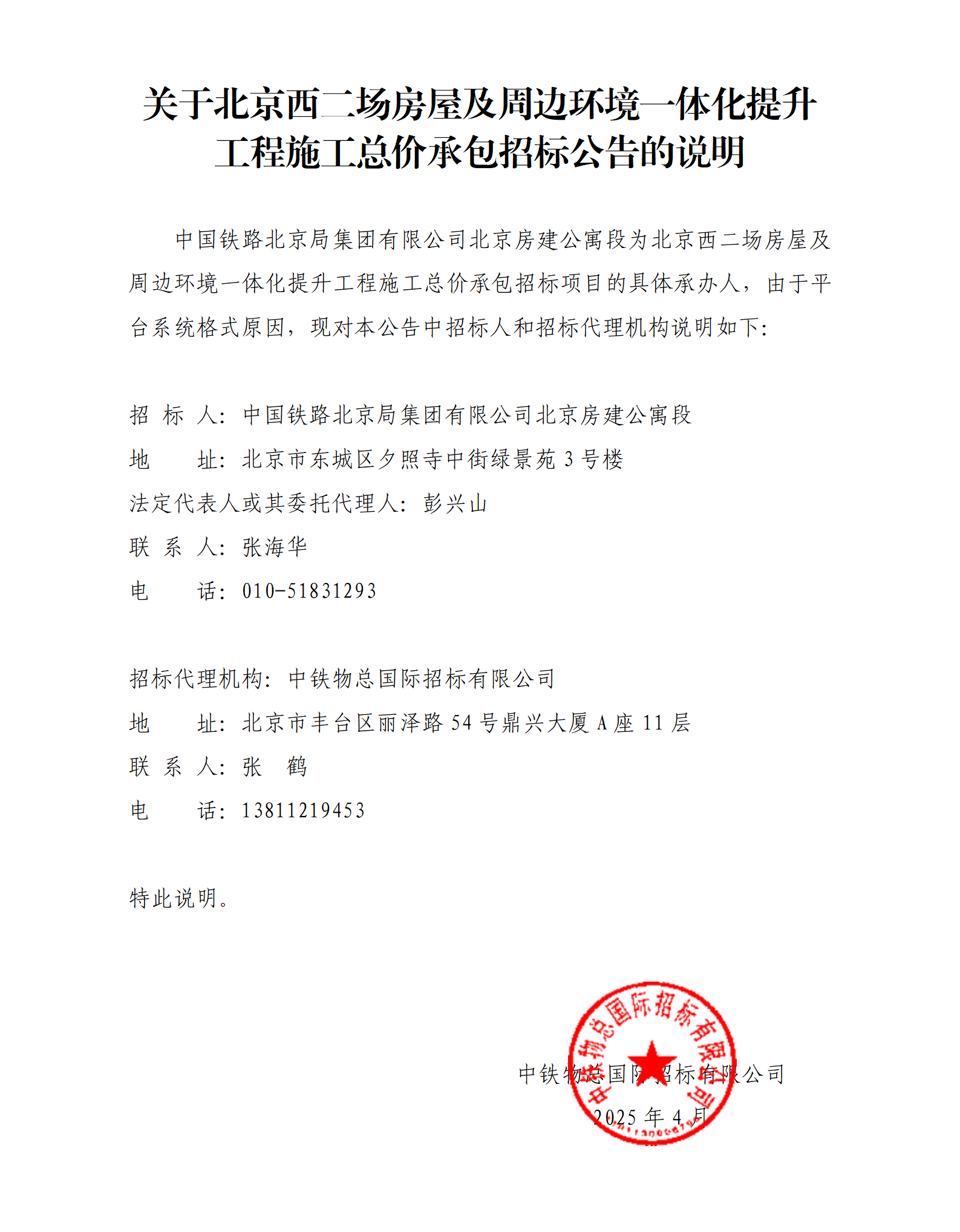 | 招标人:中国铁路北京局集团有限公司 |