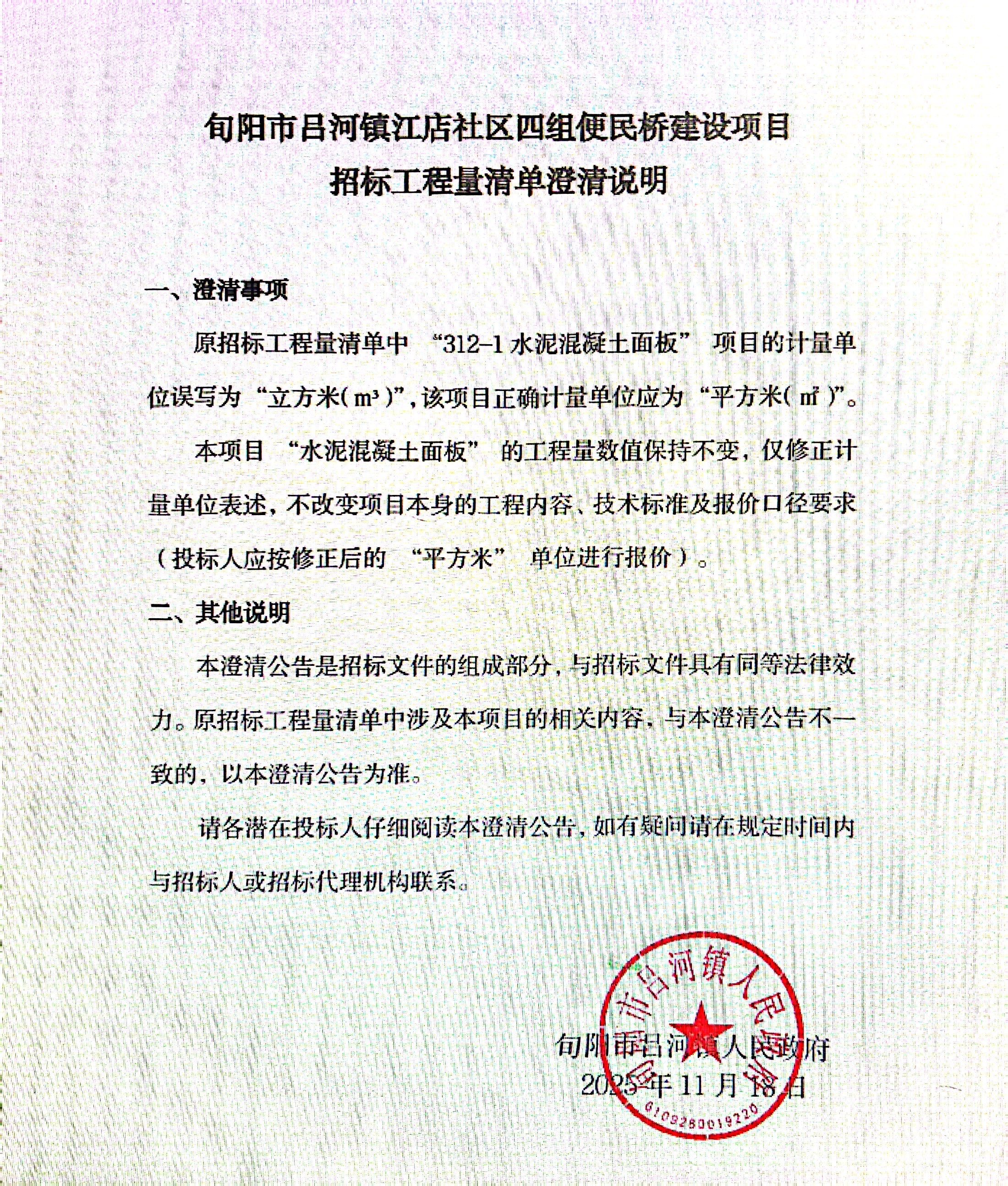 原公告的采购项目名称:旬阳市吕河镇江店社区四组便民桥建设项目