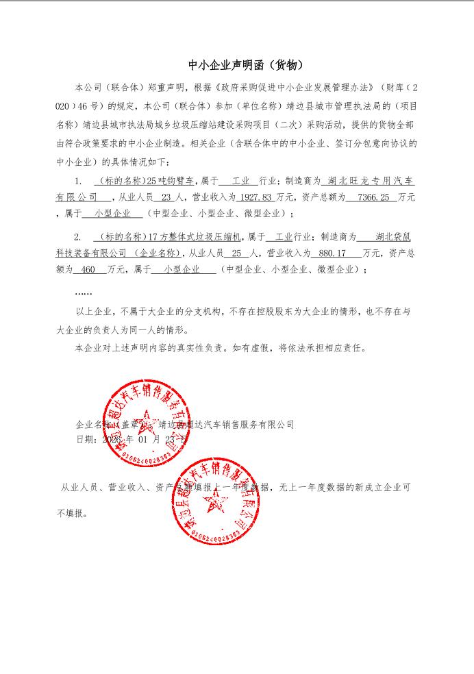 | 附件1 | 靖边县城市管理执法局靖边县城市执法局城乡垃圾压缩站建设采购项目(二次)中标(成交)明细.pdf | ||